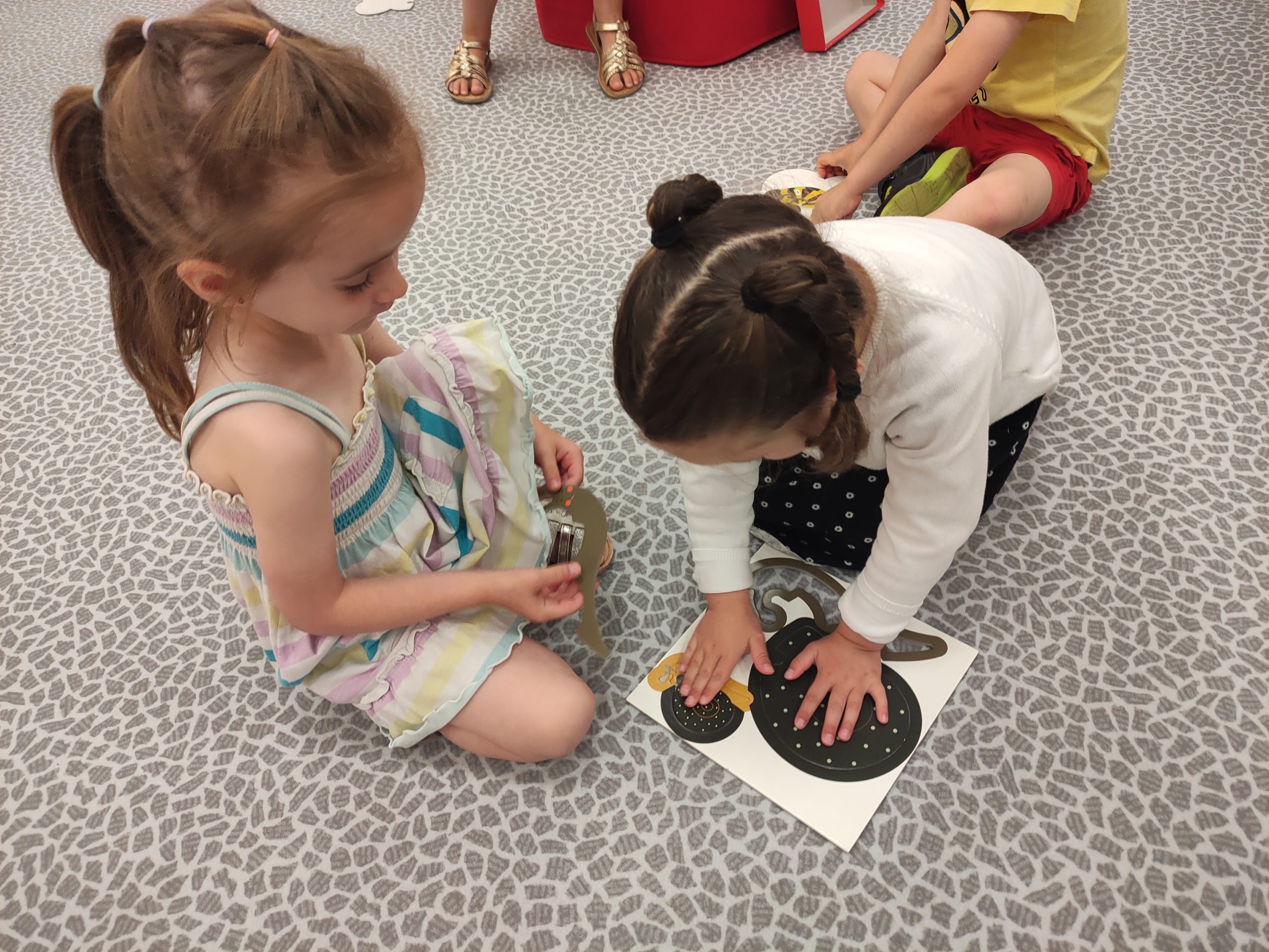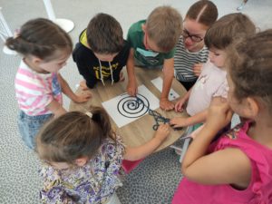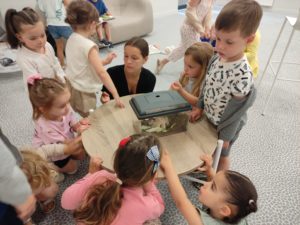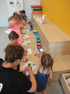 Nous sommes allés à la bibliothèque de Teillé.Claire nous y attendait et avait préparé de nombreuses activités autour de l’ escargot.Nous avons appris à mieux le connaître à travers des vidéos , des livres,des chansons , une escargotière…Nous avons fait des puzzles, des jeux de mémory.Nous avons tracé des spirales comme sur la coquille de l’escargot .Nous avons même crée un livre en collant des morceaux de papier sur les images.