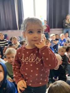 Pour célébrer la nouvelle année scolaire, nous nous sommes tous réunis dans la salle de motricité pour présenter les nouveaux élèves de l’école