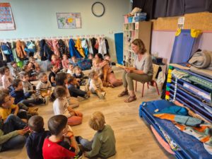 Pour clôturer cette assemblée, Virginie a lu La rentrée des mamans histoire dans laquelle les enfants sont contents de revenir à l’école mais pas les mamans qui auraient préféré rester en vacances !