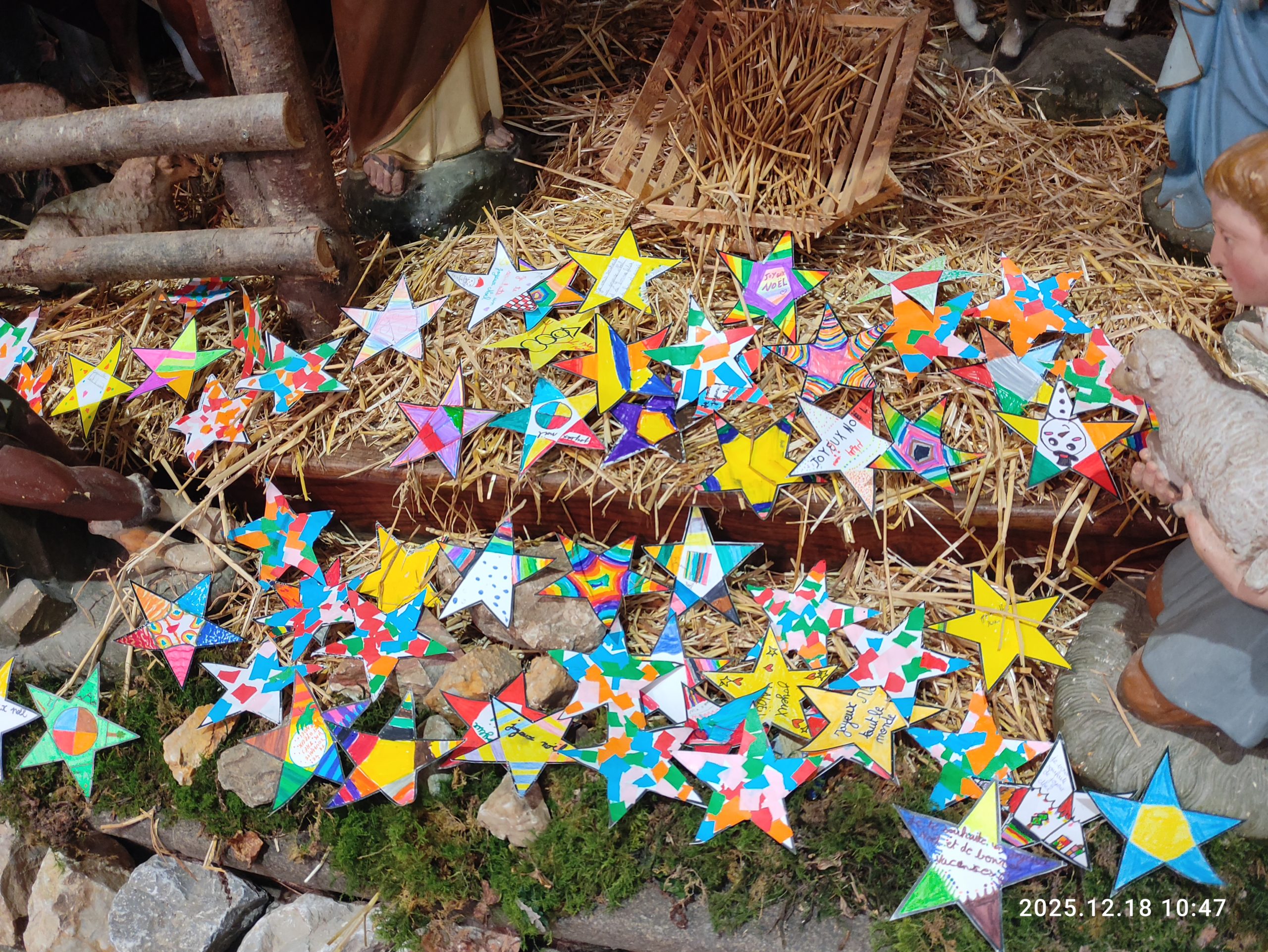 Une image forte a guidé cette célébration celle de l’étoile que les enfants ont déposé dans la crèche , chacun porte en lui une étoile symbole de sa vie et de son potentiel. Toutes ces étoiles construisent ensemble une communauté fraternelle.