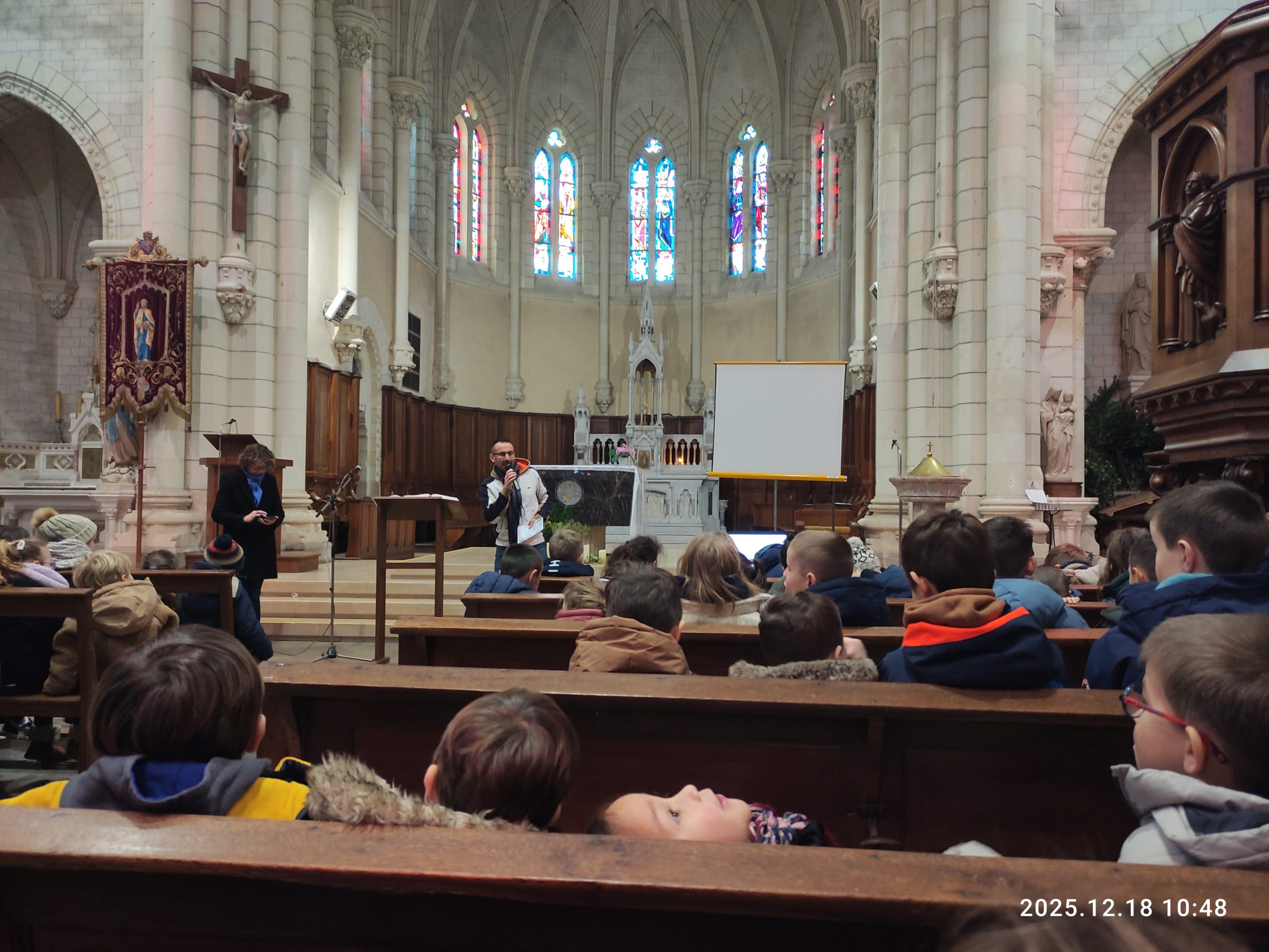 L’ensemble des élèves de l’école Saint Pierre s’est réuni dans l’ église de Teillé pour vivre un temps fort de l’année : la célébration de Noël.Animée par Claire Priarollo , Gildas et les enseignantes, cette deuxième célébration s’inscrivait dans le thème de l’ année « l’accueil, l’hospitalité ». A travers une lecture, des chants, et des intentions de prière chacun a été encouragé à offrir un pardon, soutenir un camarade, ouvrir son coeur…