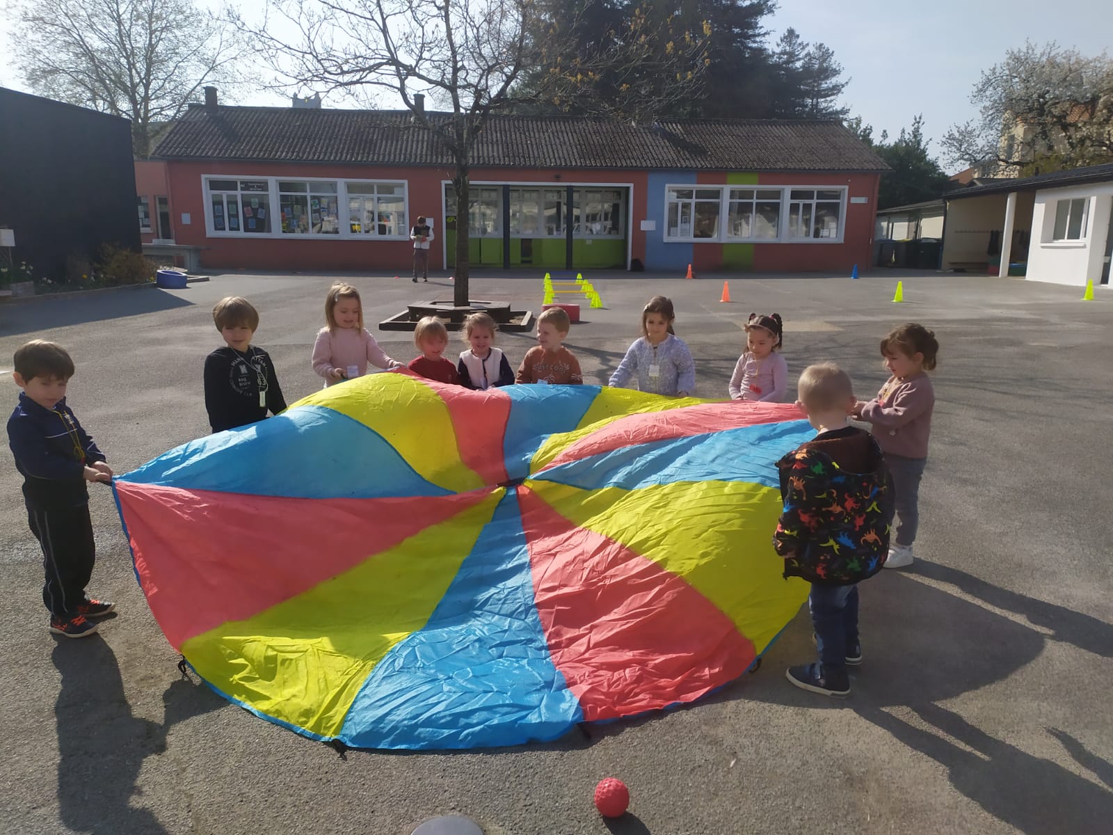 Puis avec nos nouveaux camarades on a fait plusieurs activités : du parachute , des parcours, de la lecture,des jeux de construction , du bricolage …Ensuite , nous avons joué à la récréation .Ils nous ont fait visité leur école, la cantine…c’est beaucoup plus grand que chez nous et il y a plus d’enfants , c’est dans la ville , le bus-way passe juste à côté .